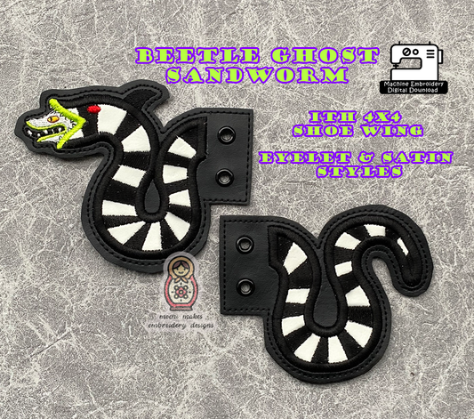 Beetlejuice Spooky Halloween Tim Burton Strange Unusual Sandworm Gothic Horror ITH Shoe Wing 4x4 In the Hoop Digital Download File Design Machine Embroidery Eyelet Satin