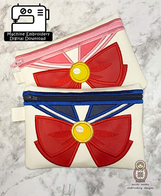 Sailor Scout Usagi Moon Anime Magical Girl Cosplay Embroidered Vinyl Zip Bag Purse DIY 5x7 Digital Download Machine Embroidery File