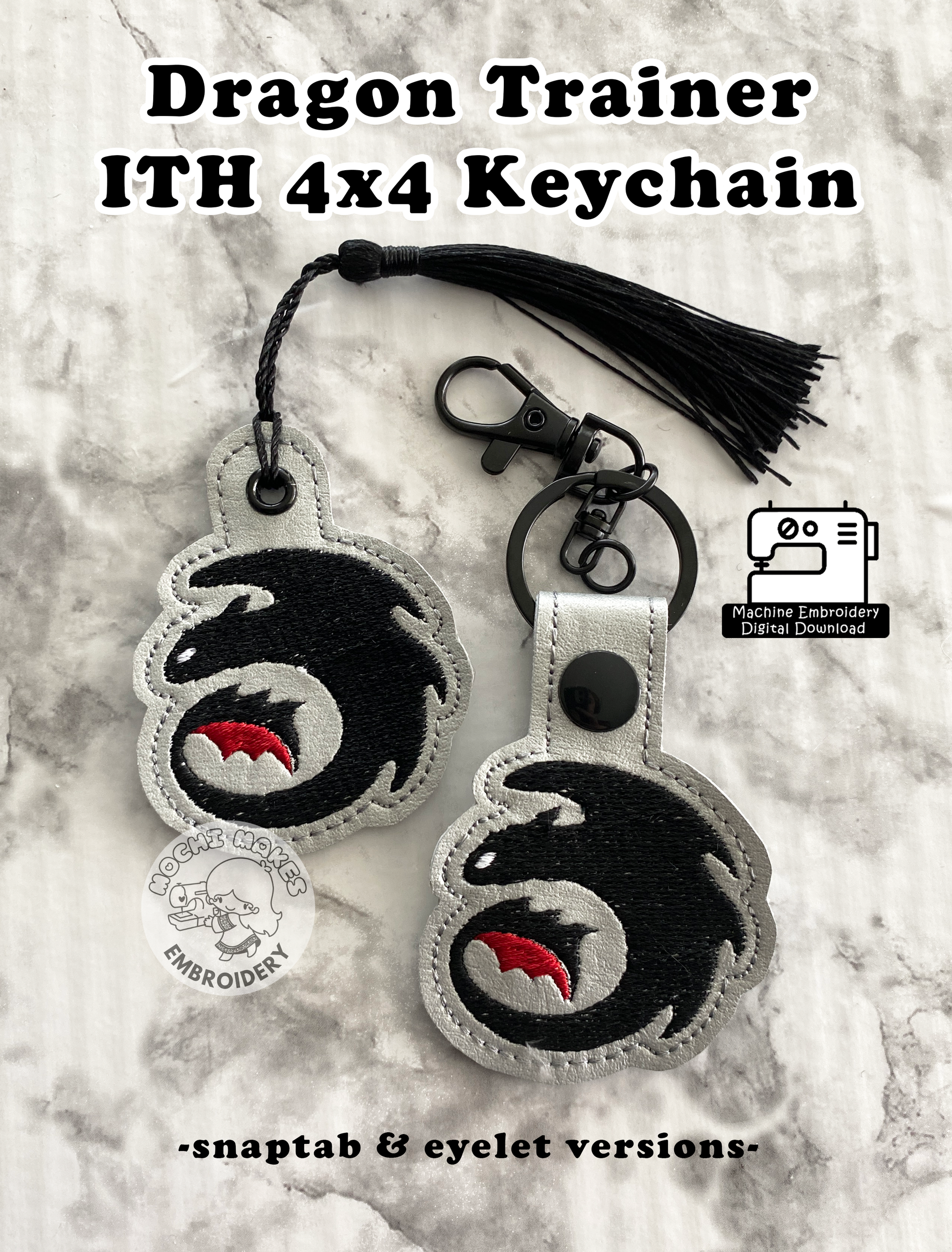 Dragon Trainer ITH In the Hoop Digital Machine Embroidery Pattern Medieval Fantasy Toothless Magic Keychain Pattern Cosplay Craft DIY Snaptab Eyelet Bag Charm 4x4