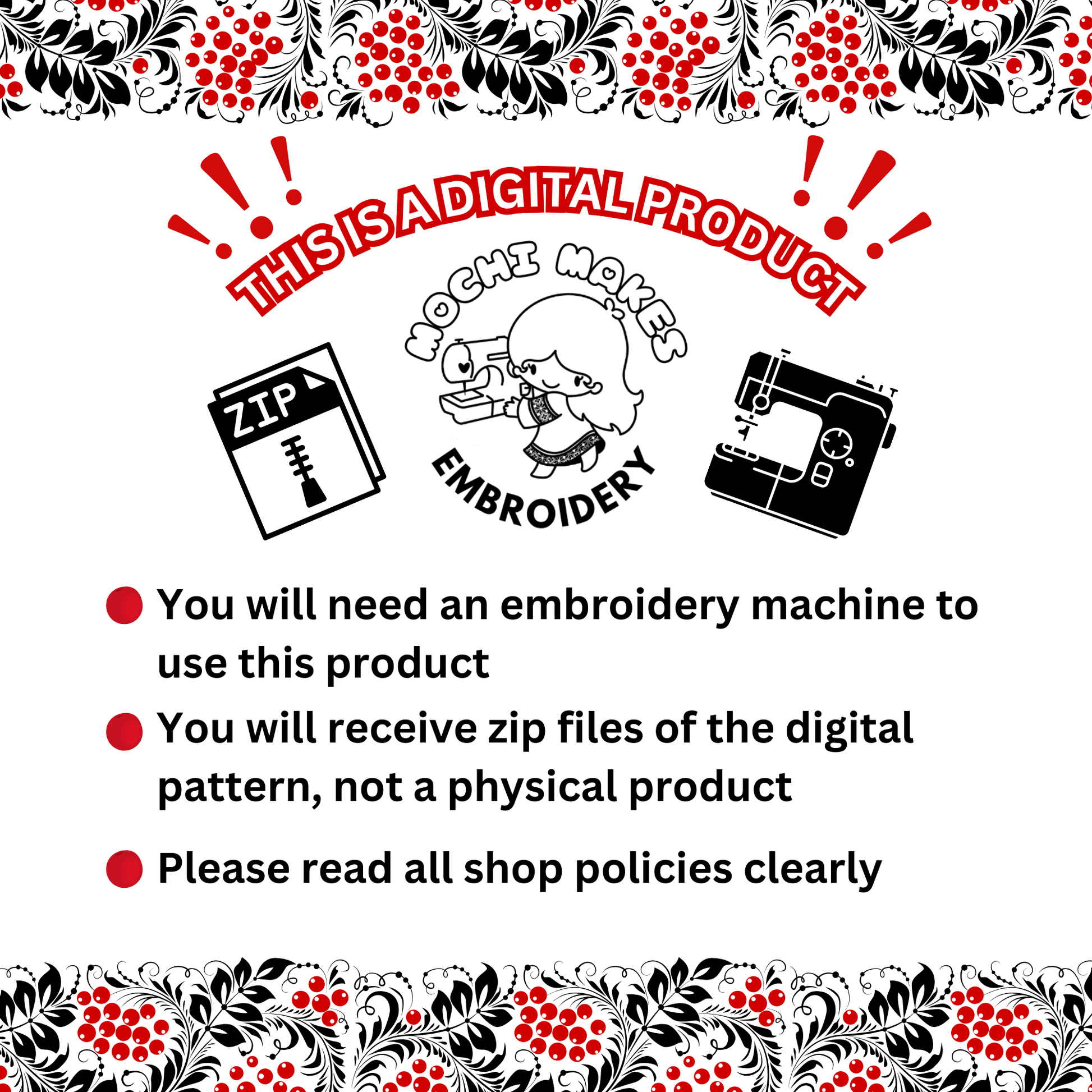 All embroidery designs in Mochi Makes shop are made by Mochi Makes and are protected by copyright.